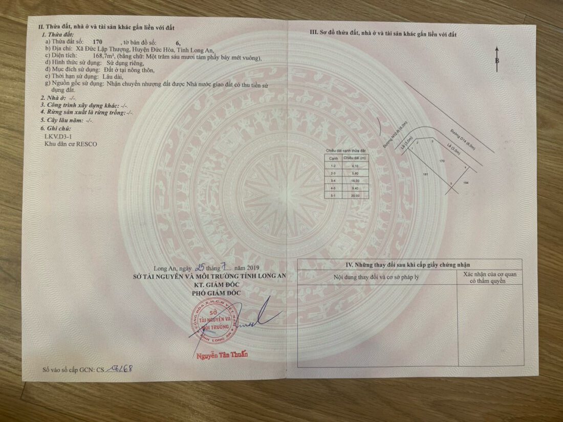 Đã có sổ đỏ, diện tích 5x20m, vị trí đẹp, đường xe 40m