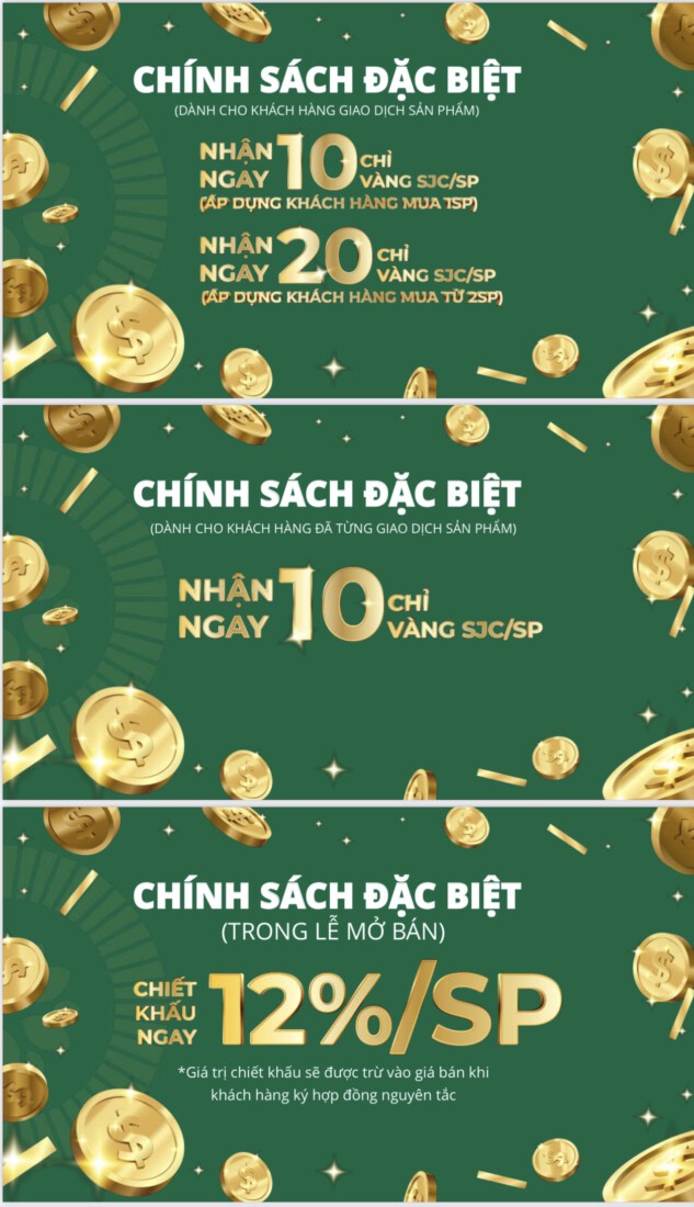 Đặc biệt: Khi khách hàng giữ chỗ thành công được nhận ngay ưu đãi 5 chỉ vàng SJC.